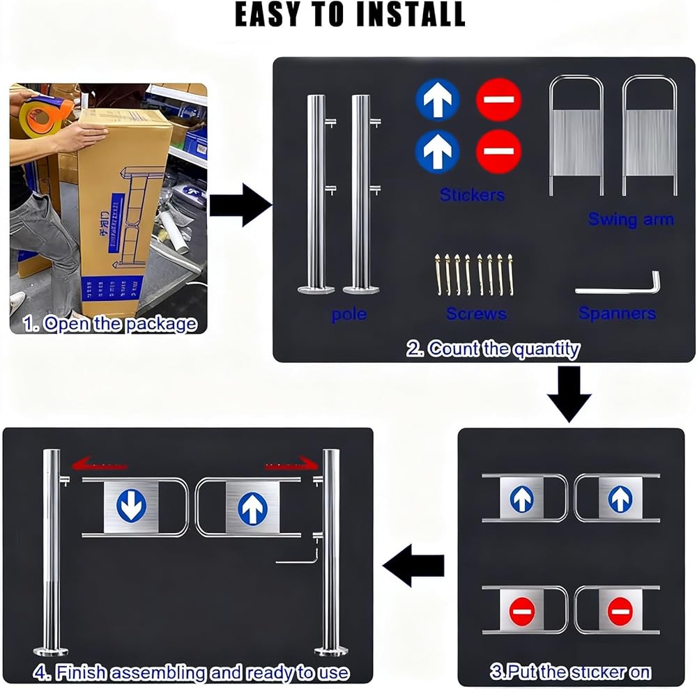 • Versatile Security Swing Door: This spring-loaded door is perfect for High-Traffic Areas such as Supermarkets, Factories, Parks, School Cafeterias, Stores, and Office Buildings. It efficiently directs foot traffic along designated paths, promoting safety and organization in bustling environments. An excellent choice for locations needing streamlined flow.