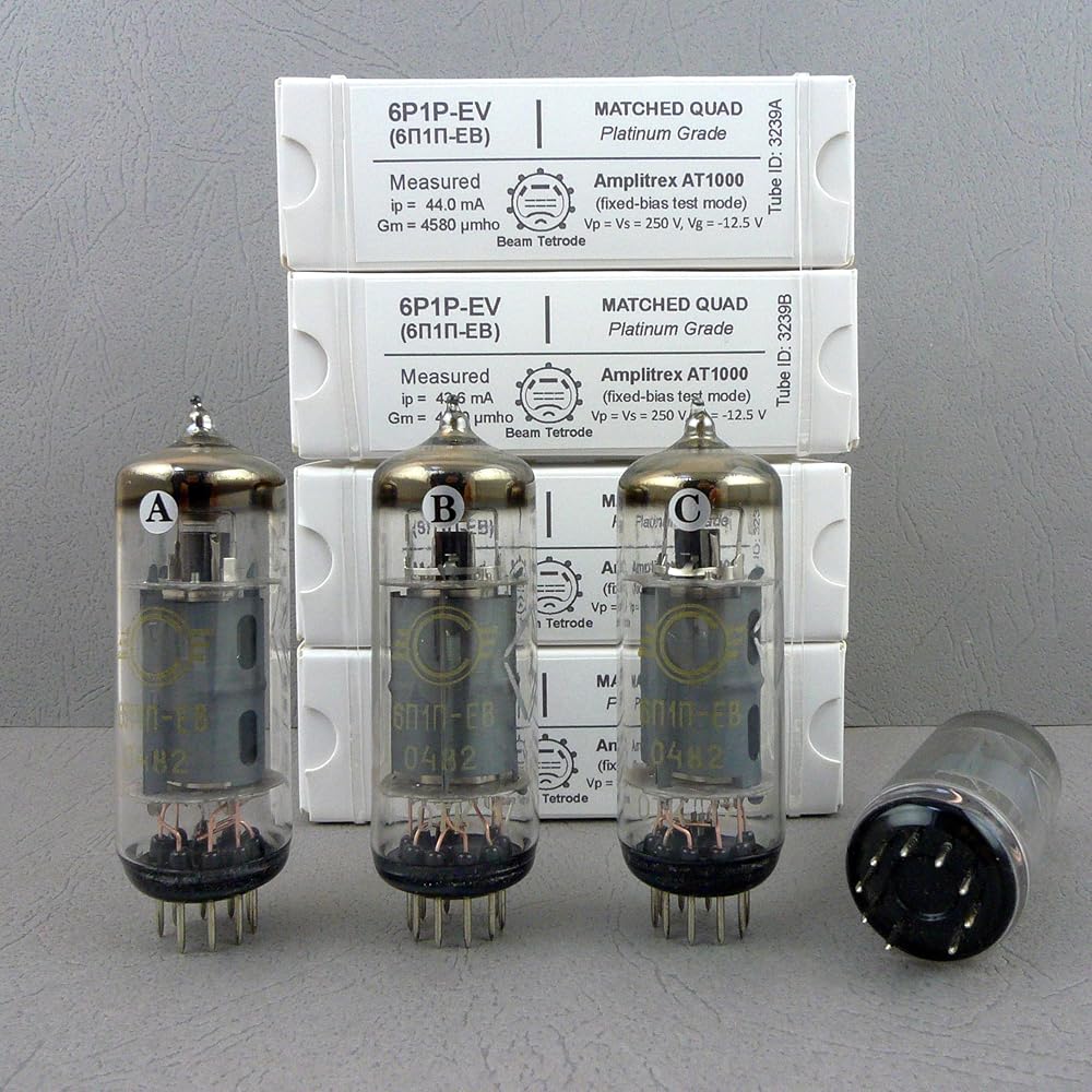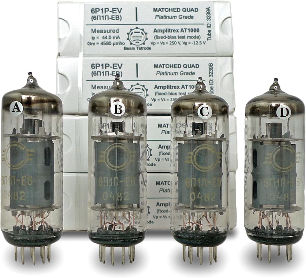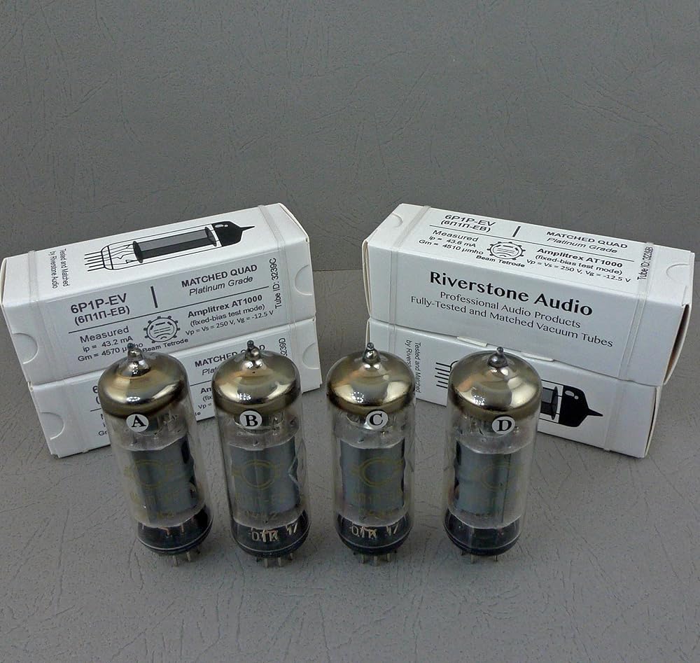 TESTED AND MATCHED by experienced engineers using Amplitrex tube testers to evaluate the electrical parameters of the tubes (additional details of Riverstone Audio's test facility can be found under our Amazon listing for 5654W tubes). The tubes are evaluated for plate current (ip), mutual conductance, tube gain, leakage and noise. If any deficiencies are found the tubes are not sold. Less than 50% of the 6P1P-EV tubes we test and audition pass our standard for high-fidelity audio use and are used in our Platinum Grade Pairs and Quads.