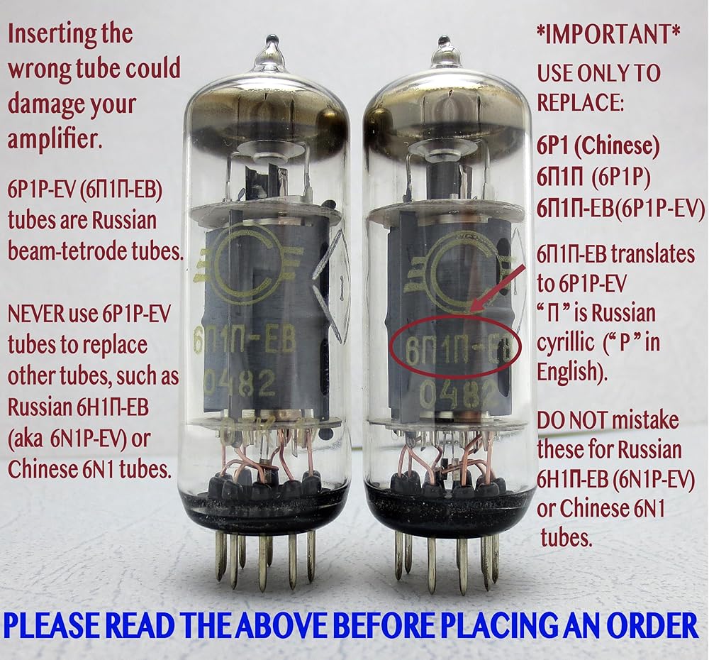 UPGRADE FOR 6P1 and 6P1P VACUUM TUBES – Please Note: 6P1P-EV tubes can only be used as a direct replacement for Chinese 6P1 and Russian 6P1P tubes. AMPLIFIER DAMAGE CAN OCCUR IF YOU SUBSTITUTE THE WRONG TYPE OF TUBE - Carefully determine the type of tube used in your headphone or amplifier before ordering.