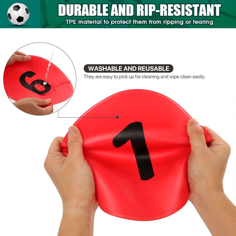TPE material makes these flat cones spot markers has a tear-resistant design ensuring long life, durable and long-lasting.