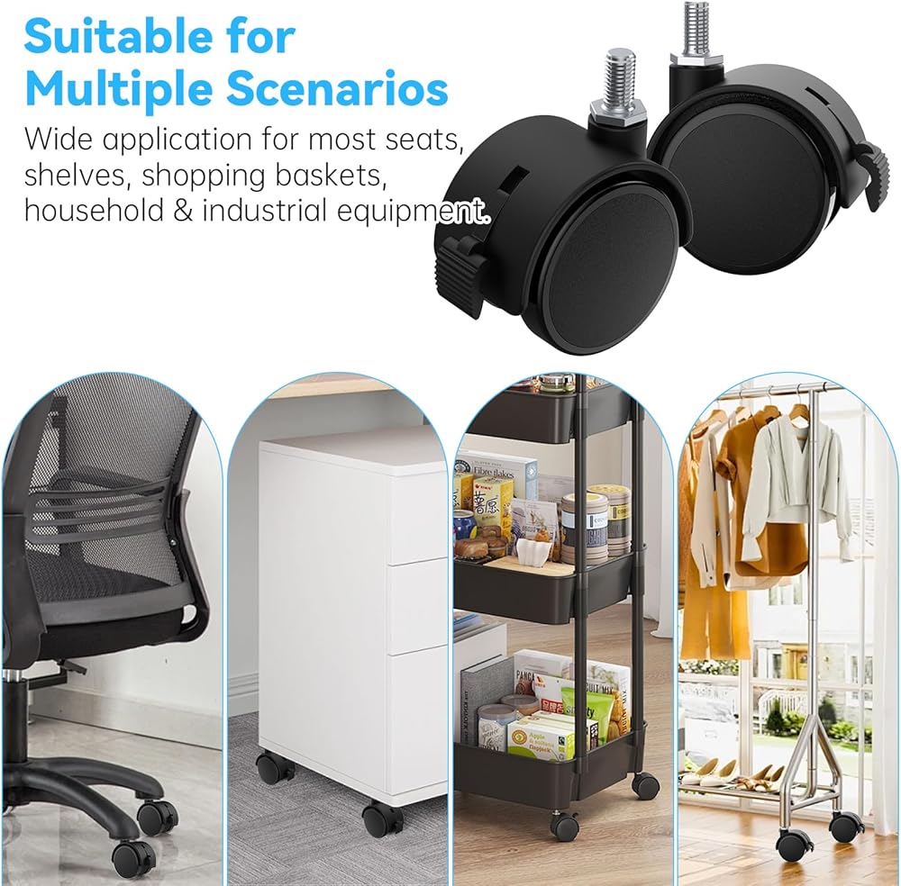 Smooth & Quiet Rolling - Lightweight plastic swivel wheels roll smoothly and quietly on all surfaces without scratching floors. Ideal replacement casters wheels for home, office, or commercial use