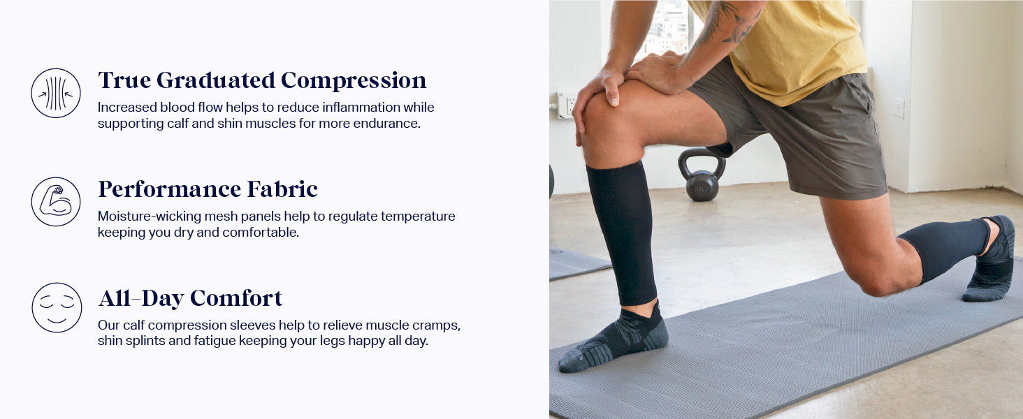 • مريح للغاية: شبكتنا الماصة للرطوبة تبقيك جافًا وباردًا ومرتاحًا. يساعد الدعم القوي على تخفيف الألم الناتج عن جبائر الساق وتشنجات الساق والتعب. تعمل الأصفاد المضادة للقرص على تقليل الانزعاج والتهيج مع ضمان بقاء الأكمام في مكانها.