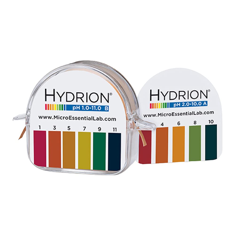 This Hydrion double roll dispenser holds two 15ft rolls of pH paper with a wide range readable from pH 1-6 & 6-11 (2 separate rolls). The dispenser is constructed of polystyrene with stainless steel cut off lips. This wide range paper has a sharp color change for each full pH unit. The pH color chart is printed on the side of the case. Range: 1-6 & 6-11. 2 Rolls/Dispenser; 10 Dispensers/Carton. Micro Essential Lab #: 149.