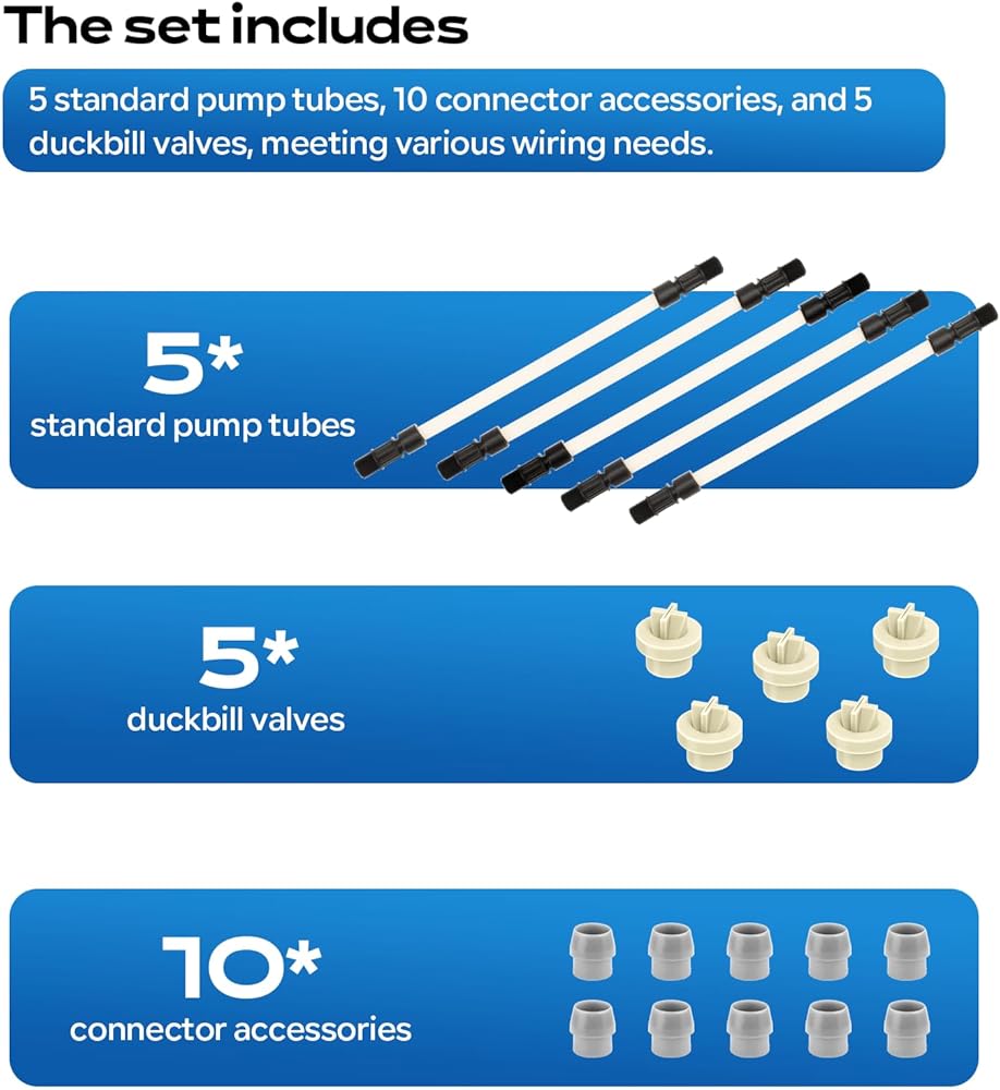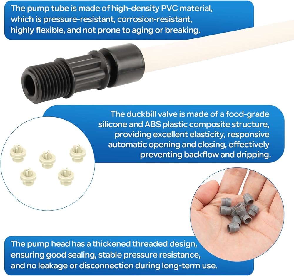 【Easy Installation】Our pump tubes and duckbill valves are easy to install and replace, eliminating the need for cumbersome processes to help you solve the problem of pump pipe connection.