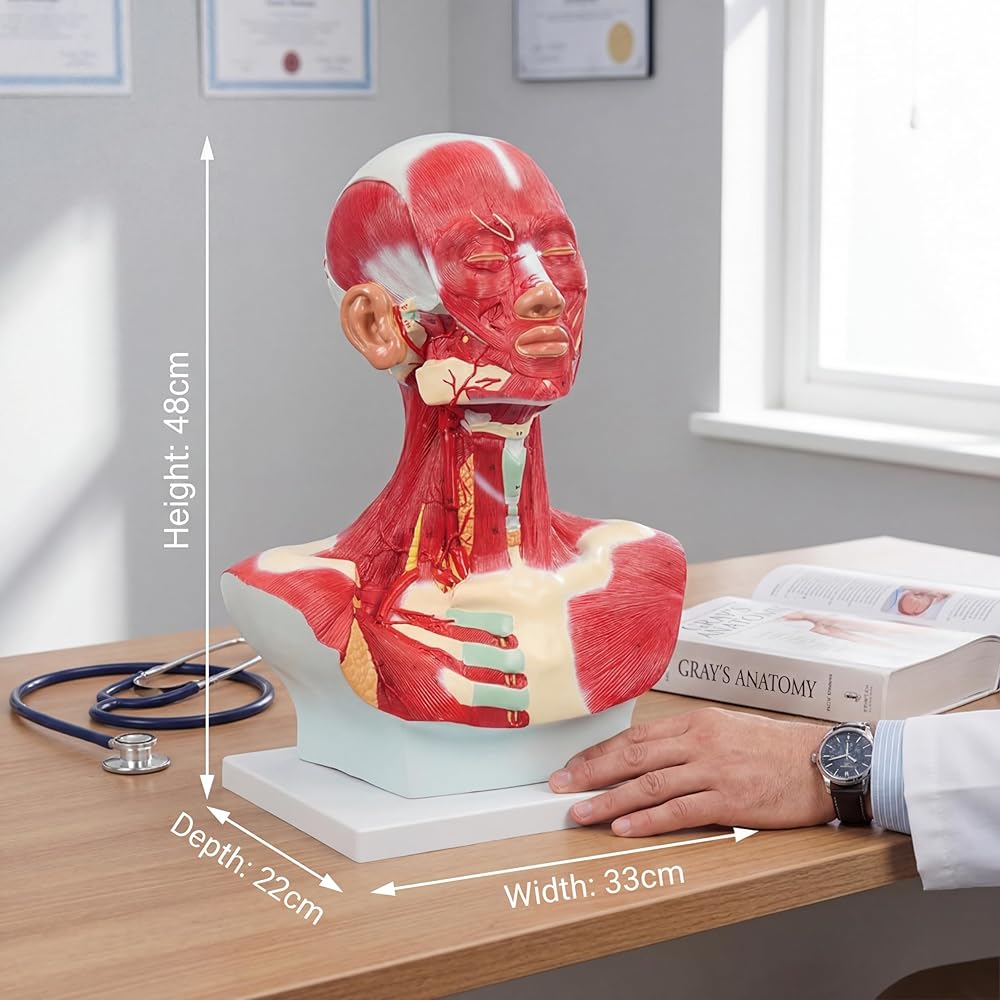 Human Anatomy FigureSpecification:Name: head and chest Muscle Anatomical Model neckMaterial: Eco PVCSize: 33 x 22 x 48cmUses for: prfect for offices and medical institutions doctors. A model mainly used for patient education.Packing list:1 x head and chest Muscle Anatomical Model neckNote:Please allow 0.12cm error due to manual measurement. pls make sure you do not mind before you bid.Due to the difference between different monitors, the picture may not reflect the actual color of the item.