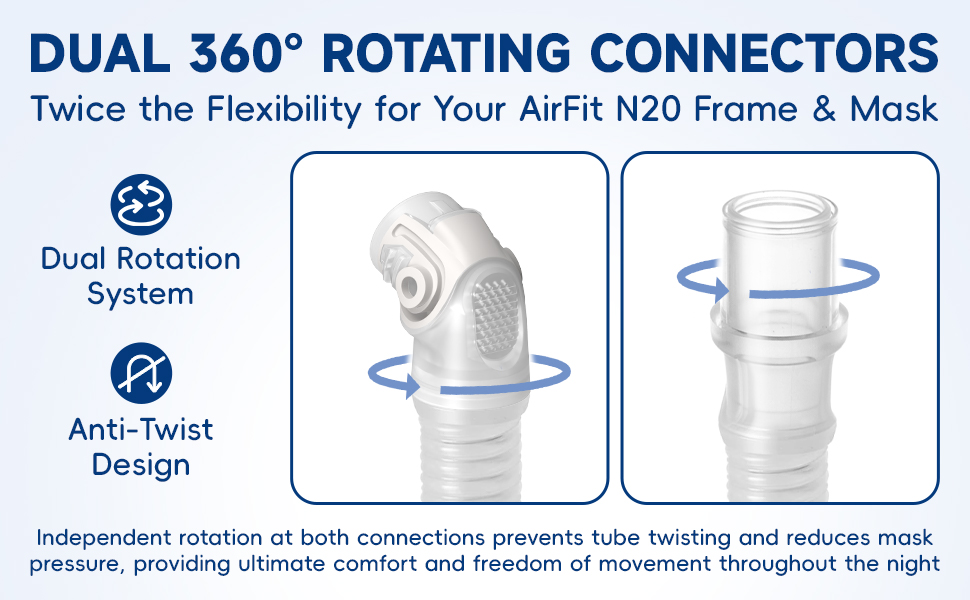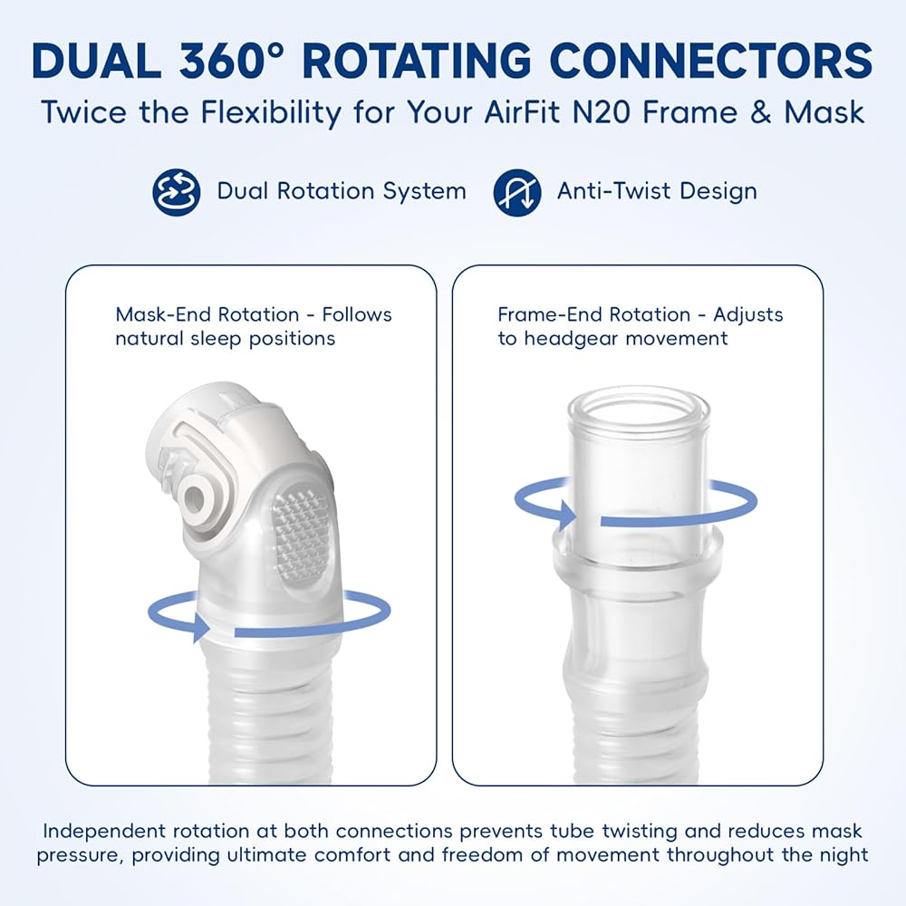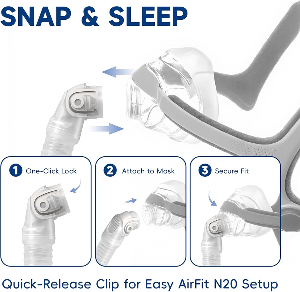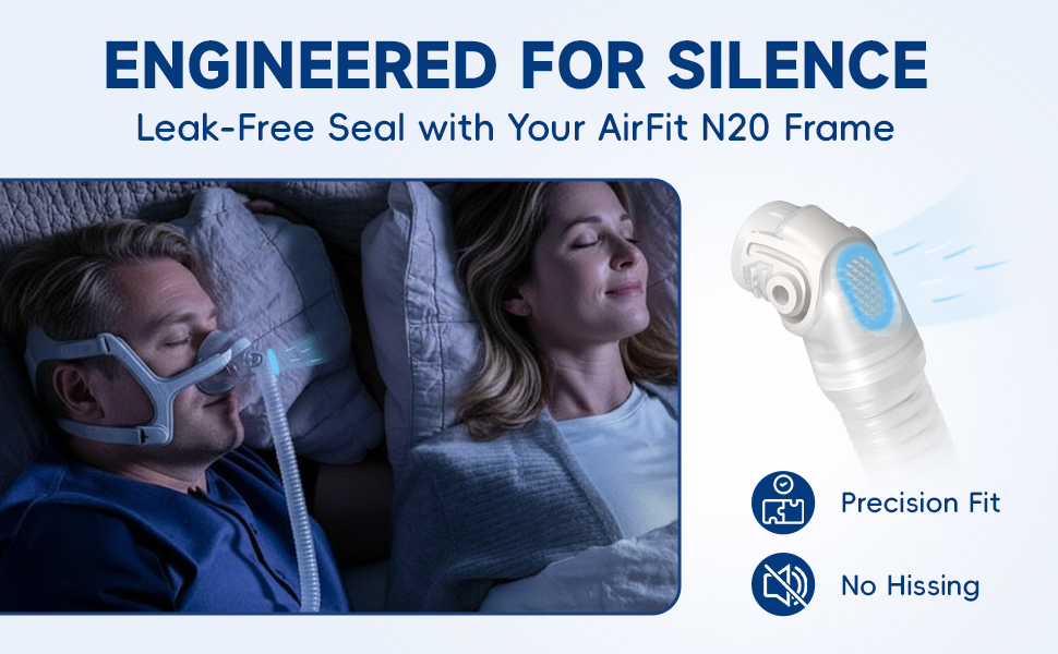 - مانع للتسرب وهادئ: اتصال محسّن متوافق مع Airfit N20 يقلل من تسرب الهواء ويقلل الضوضاء من أجل نوم دون إزعاج
