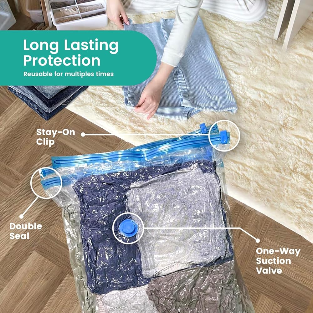 You Can Reuse Them Easily Again And Again: Pack, zip, and vacuum or use the included hand pump to remove air. These bags are reusable for years, with sturdy construction that resists punctures and maintains shape through multiple compressions. Ideal for seasonal storage, moving, or travel.