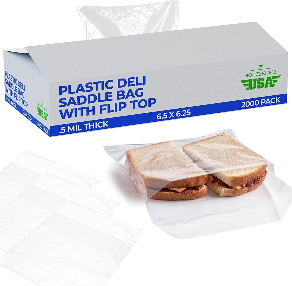 2000 حقيبة سرج مقاس 6.5 بوصة × 6.25 بوصة - أكياس سرج من البلاستيك الشفاف Deli Flip Top Sandwich Saddle - أجزاء مثالية من Deli Food Service غلاف بلاستيكي - تغليف المواد الغذائية التجارية أغلفة الساندويتشات لوازم المطاعم