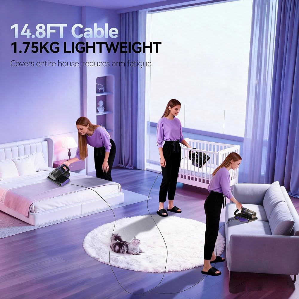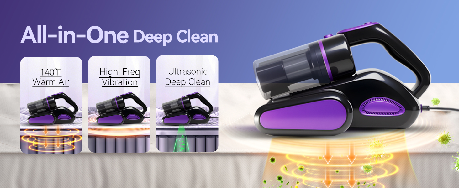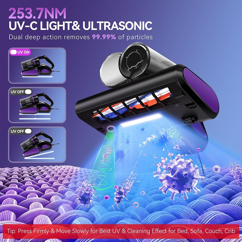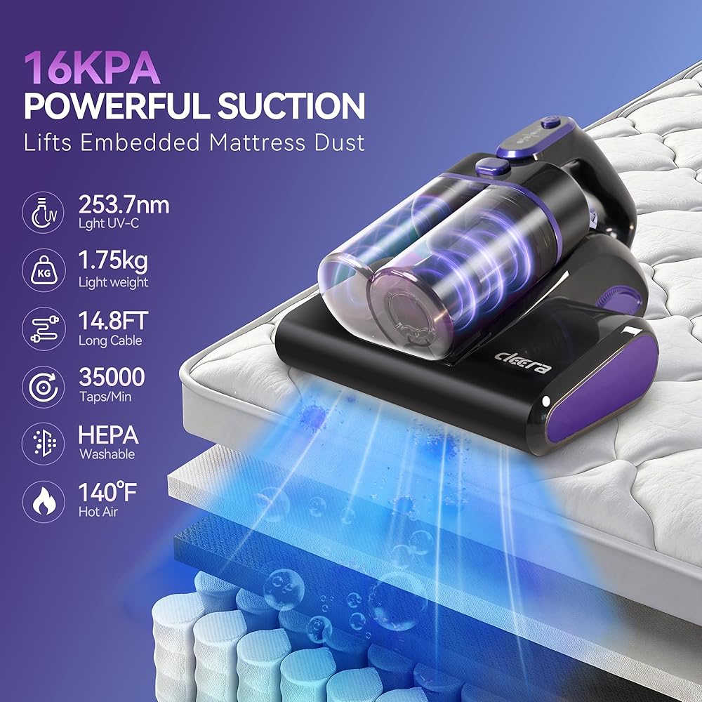 • ✨ 【بيئة صحية للمنزل والنوم】يعمل ضوء الأشعة فوق البنفسجية فئة C 253.7 نانومتر والموجات فوق الصوتية والهواء ذو ​​درجة الحرارة العالية 140 درجة فهرنهايت معًا لإزالة الغبار الناعم والوبر والجسيمات بعمق في طبقات القماش. يحافظ على المراتب منعشة ونظيفة، مما يخلق منزلًا صحيًا وبيئة نوم مريحة للعائلات والرضع والحيوانات الأليفة.