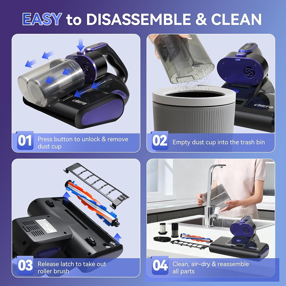 • ✨ 【تصميم خفيف الوزن وسهل الاستخدام】جسم خفيف الوزن بوزن 3.8 رطل فقط مع تشغيل بزر واحد، وتجميع وتفكيك أكواب الغبار بدون أدوات. تنظيف المراتب والأرائك وأسرة الأطفال بدون جهد، مثالي للاستخدام المنزلي اليومي.