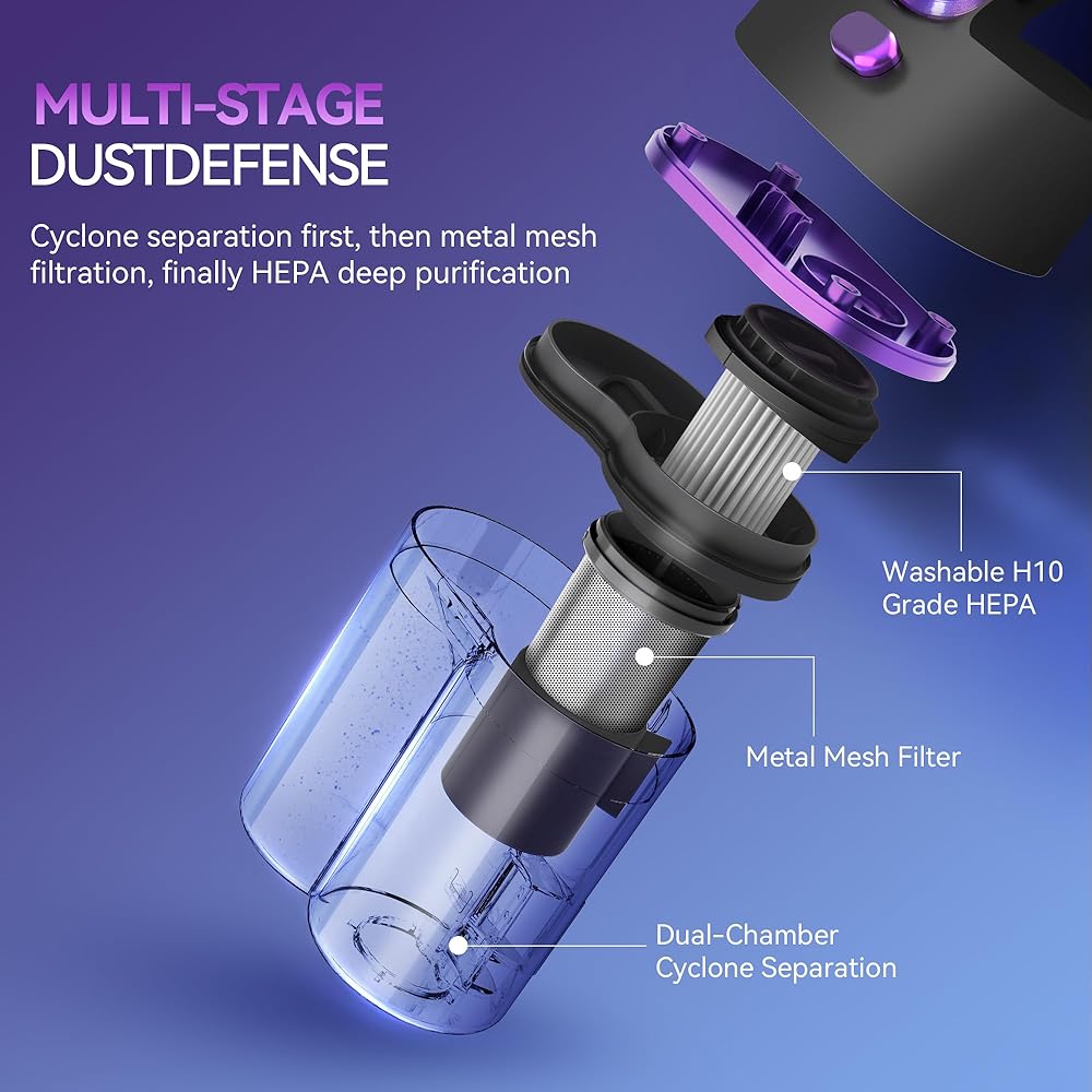 • ✨ 【نظام ترشيح هيبا الفعال】يلتقط فلتر هيبا عالي الكفاءة 99.97% من جزيئات 0.3 ميكرون، ويطلق الهواء النقي ويمنع التلوث الثانوي. يقوم كوب الغبار بسعة 0.4 لتر بفصل الغبار والشعر بكفاءة، مما يمنع الانسداد ويحافظ على قوة الشفط.