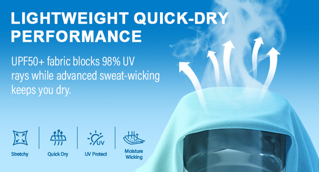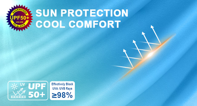 حماية من أشعة الشمس بعامل حماية من أشعة الشمس 50+: تحجب أكثر من 98% من الأشعة فوق البنفسجية مع نسيج بعامل حماية من أشعة الشمس 50+ لمنع حروق الشمس؛ يوفر درعًا موثوقًا من الشمس ويحتفظ بتصنيفه الوقائي أثناء الأنشطة الخارجية أو السباحة أو صيد الأسماك، خاصة أثناء نزهات الصيف الطويلة