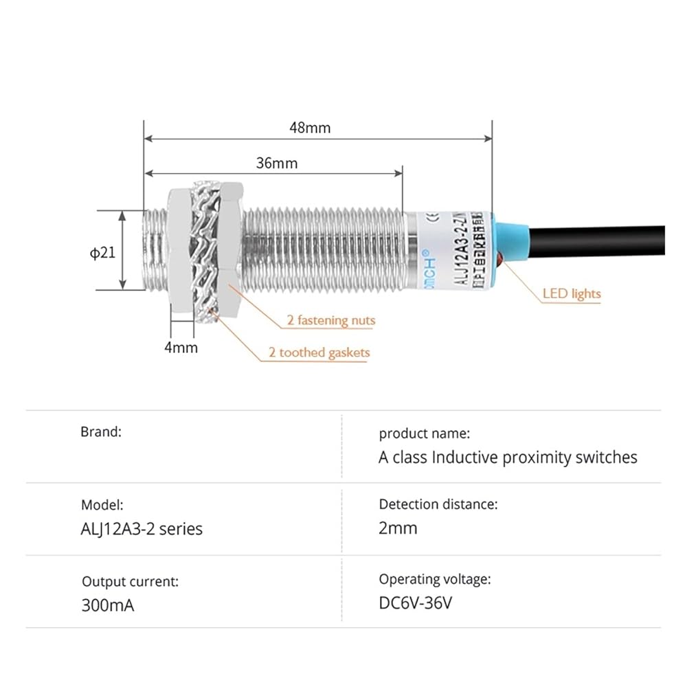الفئة أ مفتاح القرب الاستقرائي سلسلة ALJ12A3-2-Z مع حماية ماس كهربائى M12 مستشعر القرب NPN NO DC 3-Wire
