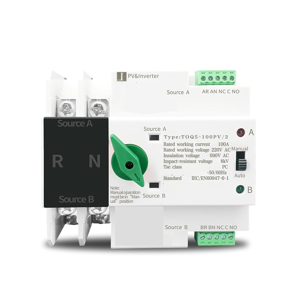 مرحلة واحدة Din Rail ATS لمفاتيح تحديد النقل التلقائي للطاقة الكهروضوئية والعاكس المزدوج بدون انقطاع 2P 63A 100A 125A(125A)