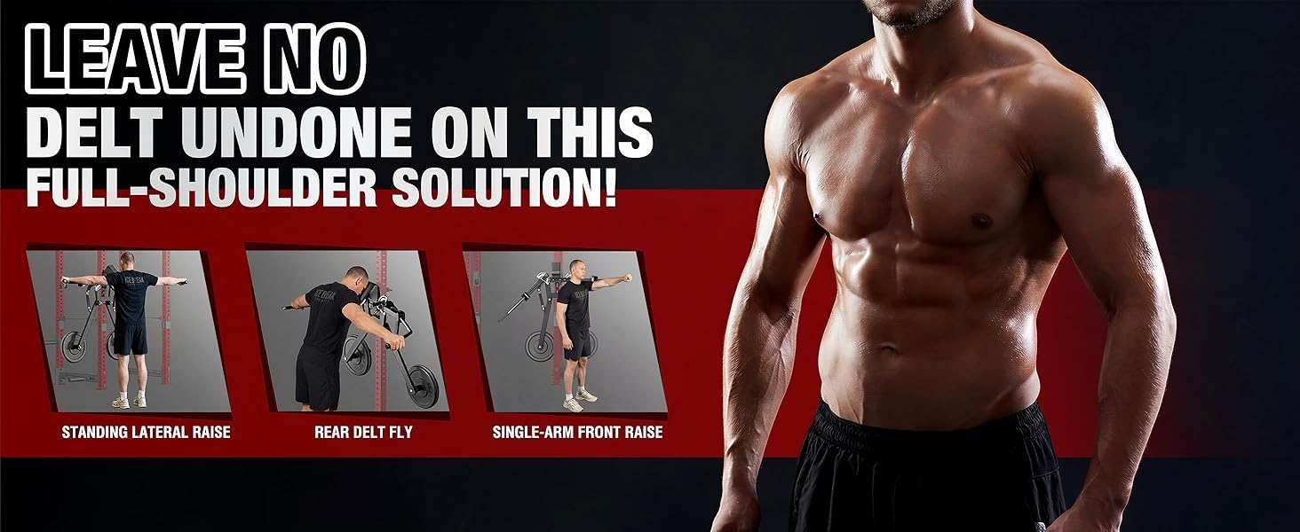 خيارات تدريب متعددة الاستخدامات: تتميز بذراع ميكانيكي قابل للتعديل بـ 13 مستوى و100 درجة، ويمكن التبديل بسلاسة بين ذبابة الصدر والرفع الجانبي من خلال تعديل بسيط للدبوس. أطلق العنان لحركات إضافية مثل ذبابة الدلتا الخلفية، والرفع الأمامي بذراع واحدة، والضغط على الكتف لنحت شكل دالي ثلاثي الأبعاد وجسم منحوت على شكل حرف V