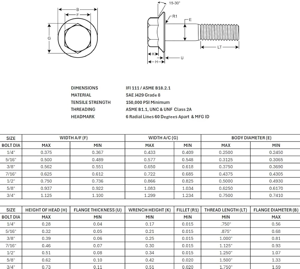 - القطر/الملعب: 3/8"-16 | الطول تحت الرأس: 2"