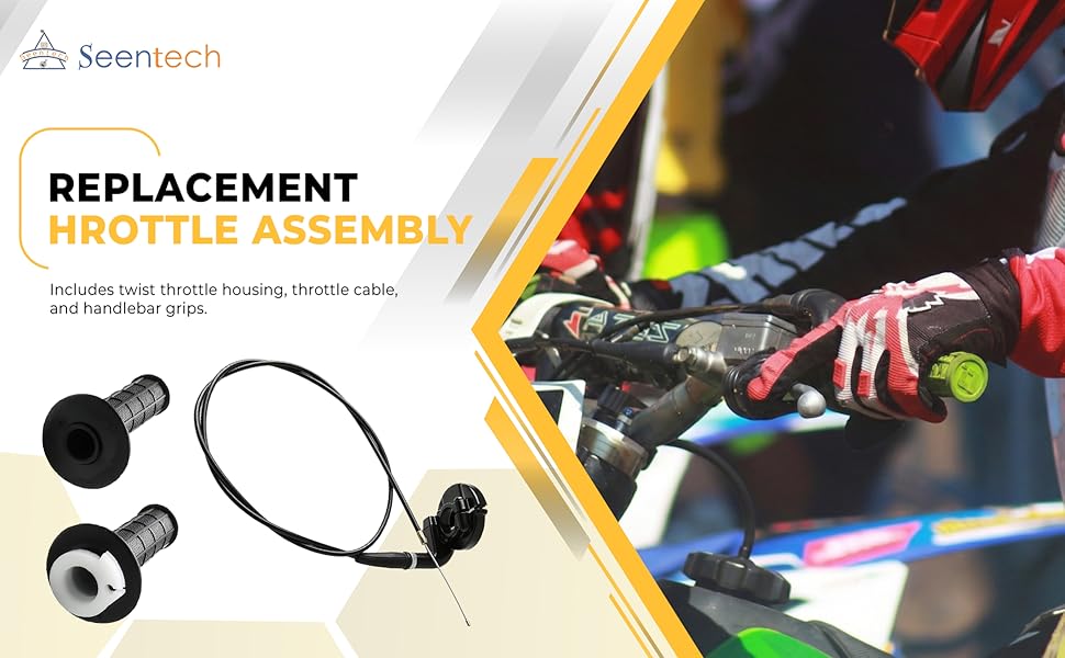 • 𝗖𝗼𝗺𝗽𝗹𝗲𝘁𝗲 𝗧𝘄𝗶𝘀𝘁 𝗧𝗵𝗿𝗼𝘁𝘁𝗹𝗲 𝗔𝘀𝘀𝗲𝗺𝗯𝗹𝘆 : يشتمل على مبيت الخانق الملتوي وكابل الخانق ومقابض المقود. تم تصميمها كمجموعة خانق بديلة مباشرة لدراجات الحفرة والدراجات الترابية.
