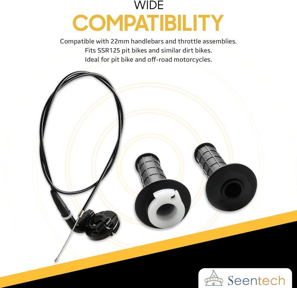 Seentech 22mm Twist Throttle Grip مع مجموعة الكابل - يناسب SSR125 Pit Bike، Baja MB165 Mini Bike، 50cc-250cc 4-Stroke Dirt Bike Handlebar Grip Set for 7/8 بوصة المقاود