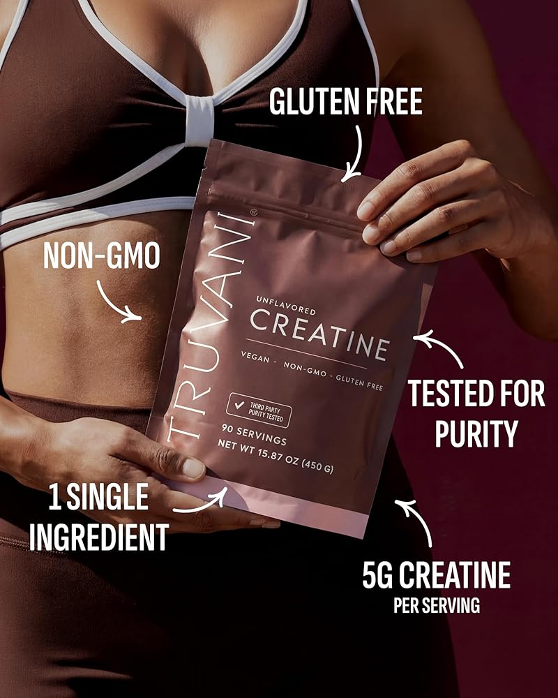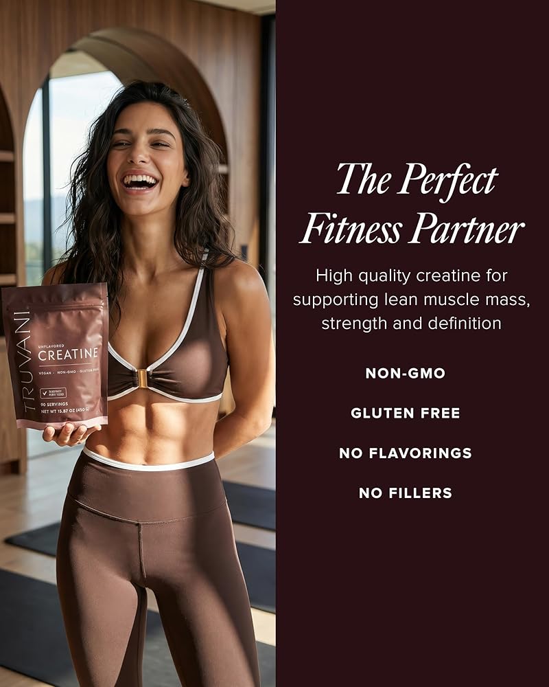 كرياتين مونوهيدرات، الشكل الأكثر بحثًا: يوفر Truvani Creatine 5 جرام من مونوهيدرات الكرياتين النقي لكل وجبة، وهو الشكل الأكثر توفرًا بيولوجيًا وفعالية سريريًا. لا حشو، لا إضافات، لا شيء لا تحتاجه.