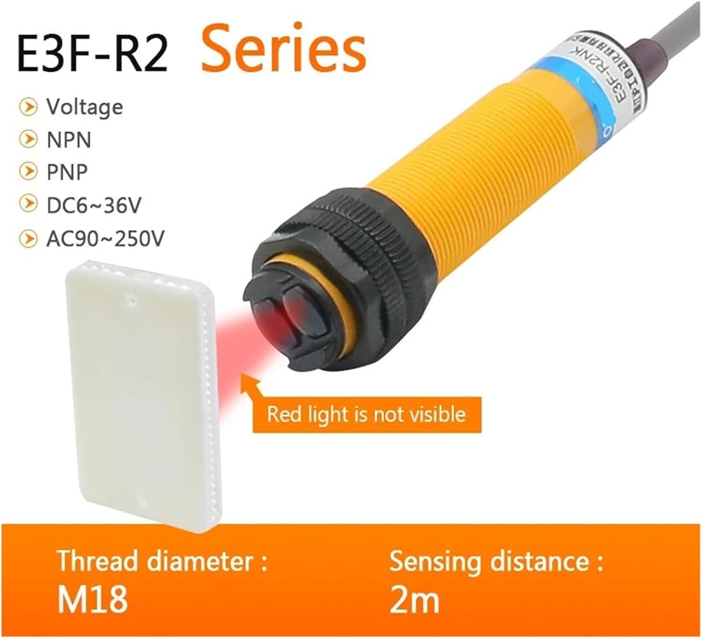 سلسلة E3F-R2 ردود الفعل العاكسة الكهروضوئية التبديل NPN PNP M18 نطاق الكشف عن الاستشعار الاستقرائي 2M