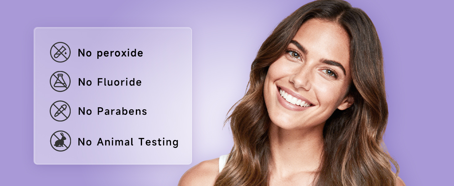 لطيف وحساس: خالٍ من البيروكسيد والفلورايد وغير كاشط. يبيض مظهر الأسنان بشكل آمن للأسنان واللثة الحساسة.