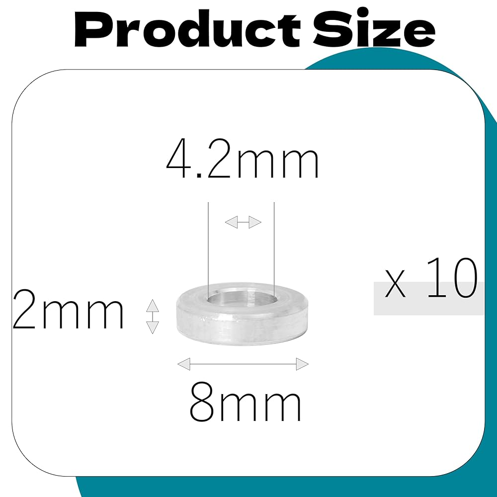 【Product Size】Size: 4.2 x 8 x 2 mm / 0.165 x 0.315 x 0.0787 inch (ID*OD*L); Fit Screw Bolts Size: M4 Color: Silver;