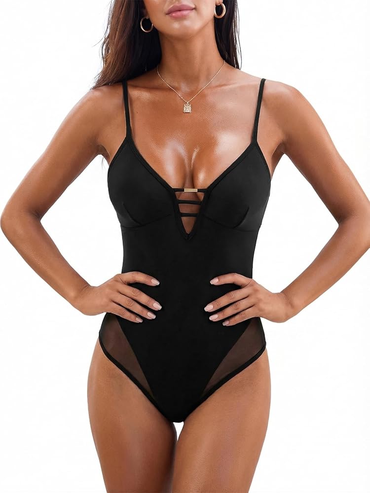 التصميم: رقبة عميقة وأشرطة قابلة للتعديل تتصدر المظهر، مع قصة ساق قياسية وتغطية كلاسيكية للمؤخرة من أجل ملاءمة نظيفة يمكن ارتداؤها في أي مكان.