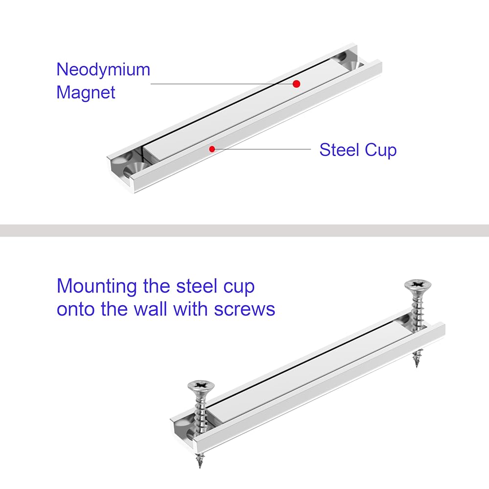 【قوية للغاية】- مصنوعة من مواد أرضية نادرة (النيوديميوم والحديد والبورون)، مغناطيسات النيوديميوم الخاصة بنا هي الأقوى من حيث حجمها، مع تصنيف عالي الجودة N52. مثالية للمهام التي تحتاج إلى قوة إضافية! قوة السحب العمودية يمكن أن تصل إلى 70 رطلاً. الكوب الفولاذي يجعل مغناطيس القناة أكثر قوة.