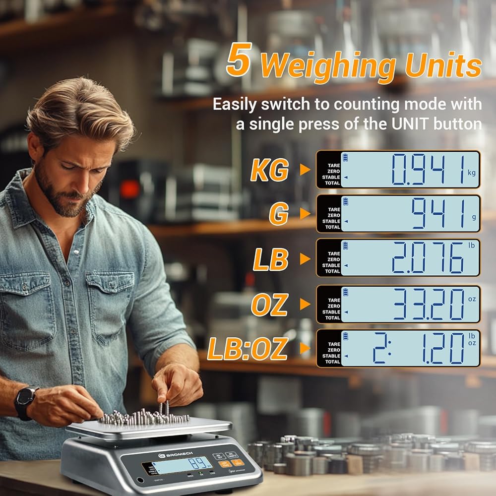 [تحويلات متعددة الاستخدامات مكونة من 5 وحدات وقدرة مذهلة] يوفر مقياس Bromech عالي الدقة مرونة استثنائية مع خمس خيارات للوحدات: كجم، وجرام، ورطل، وأوقية، ورطل: أونصة، ويتميز بأقصى وزن للعرض يبلغ 30 كجم (66 رطلاً). سواء كان الأمر يتعلق بقياس مكونات الطهي، أو حزم الشحن، أو التعامل مع مشاريع DIY، فإن هذا الميزان الاحترافي يتكيف بسهولة مع احتياجاتك المتنوعة - مما يوفر عروضًا دقيقة للوزن لكل من العناصر خفيفة الوزن والأحمال الثقيلة على حدٍ سواء.