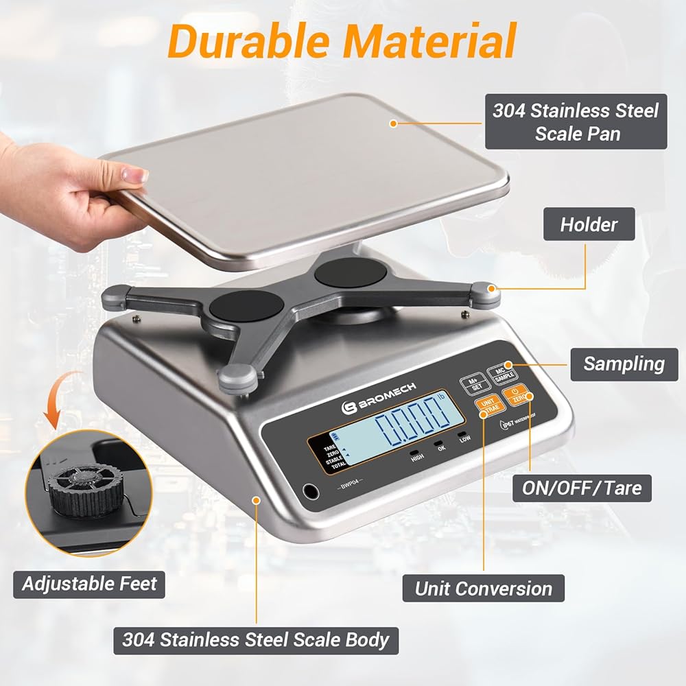 [وزن وعد دقيق] بسعة 66 رطل وزيادة 0.002 رطل (سعة 30 كجم، زيادة 1 جرام)، هذا الميزان الصناعي، المجهز بأقدام قابلة للتعديل وخرزة تسوية، يضمن أقصى قدر من الدقة. إنه يتفوق في عد المهام، والتعامل بسهولة مع العناصر مثل البراغي والمسامير والمكونات الإلكترونية والحبوب والكبسولات، مما يبسط إدارة المخزون والتعبئة والتغليف.