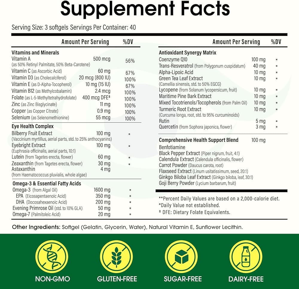 تركيبة تركز على الامتصاص مع أوميغا 3! يتم دمج مغذيات العين القابلة للذوبان في الدهون مع أوميغا 3 (EPA، DHA، GLA) لدعم الامتصاص والاستخدام المتسقين، مما يساعد مكمل العين هذا على تقديم دعم غذائي يومي موثوق به دون إجراءات روتينية معقدة.
