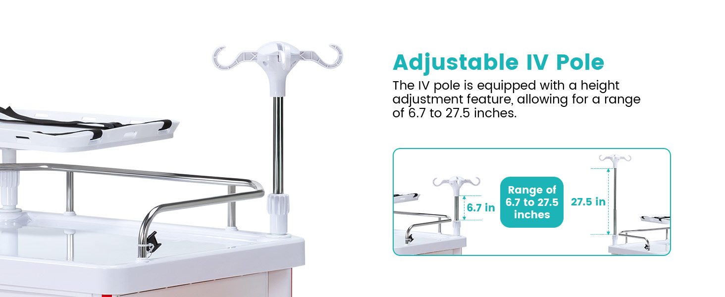 تكيف متعدد الاستخدامات: تم تجهيز عربة المختبر الدوارة بملحقات مثل خمسة أدراج انزلاقية سلسة، و32 قسمًا قابلاً للتعديل، وقوس مزيل الرجفان، وصينية منزلقة للخارج، وصندوق تخزين كبير، وعمود IV قابل لضبط الارتفاع، وسلة مهملات، وصندوق نفايات طبية مغطى، ولوحة الإنعاش القلبي الرئوي، ولوحة طاقة بثلاثة مآخذ، وحامل خزان الأكسجين. إنه مثالي للمستشفيات المزدحمة، والمختبرات المهنية، وبيئات الرعاية المنزلية، حيث يوفر مساحة تخزين قابلة للتكيف
