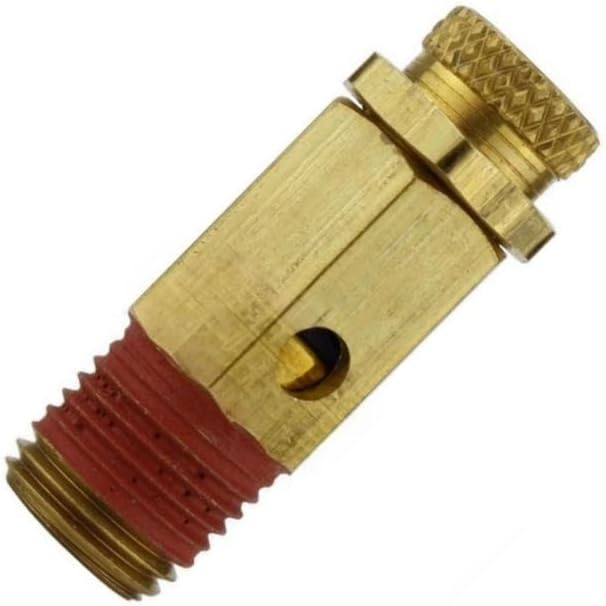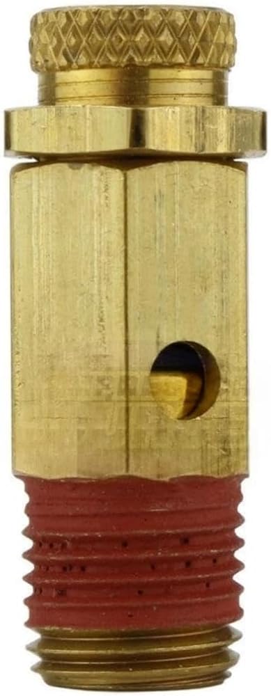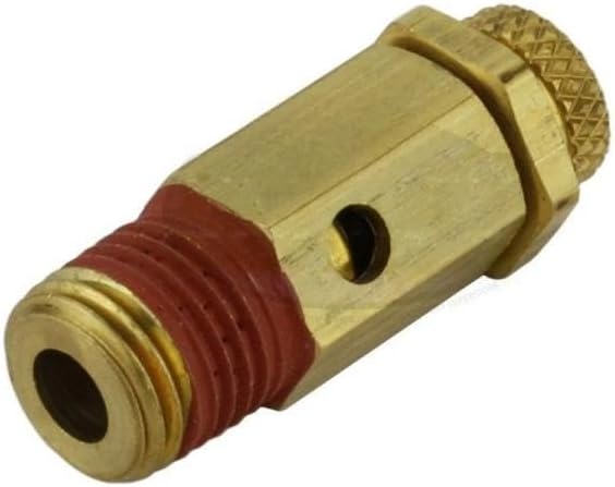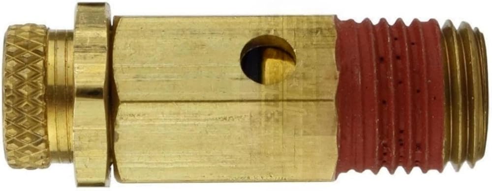NC25-001 صمام منبثق قابل للتعديل لضاغط الهواء - لأدوات الهواء وقطع غيار ضواغط الهواء - صمام تخفيف ضغط الضاغط - 25-50 رطل لكل بوصة مربعة 1/4 بوصة ارتفاع MNPT 1-5/8 بوصة الوزن 1.5 أونصة من النحاس الصلب
