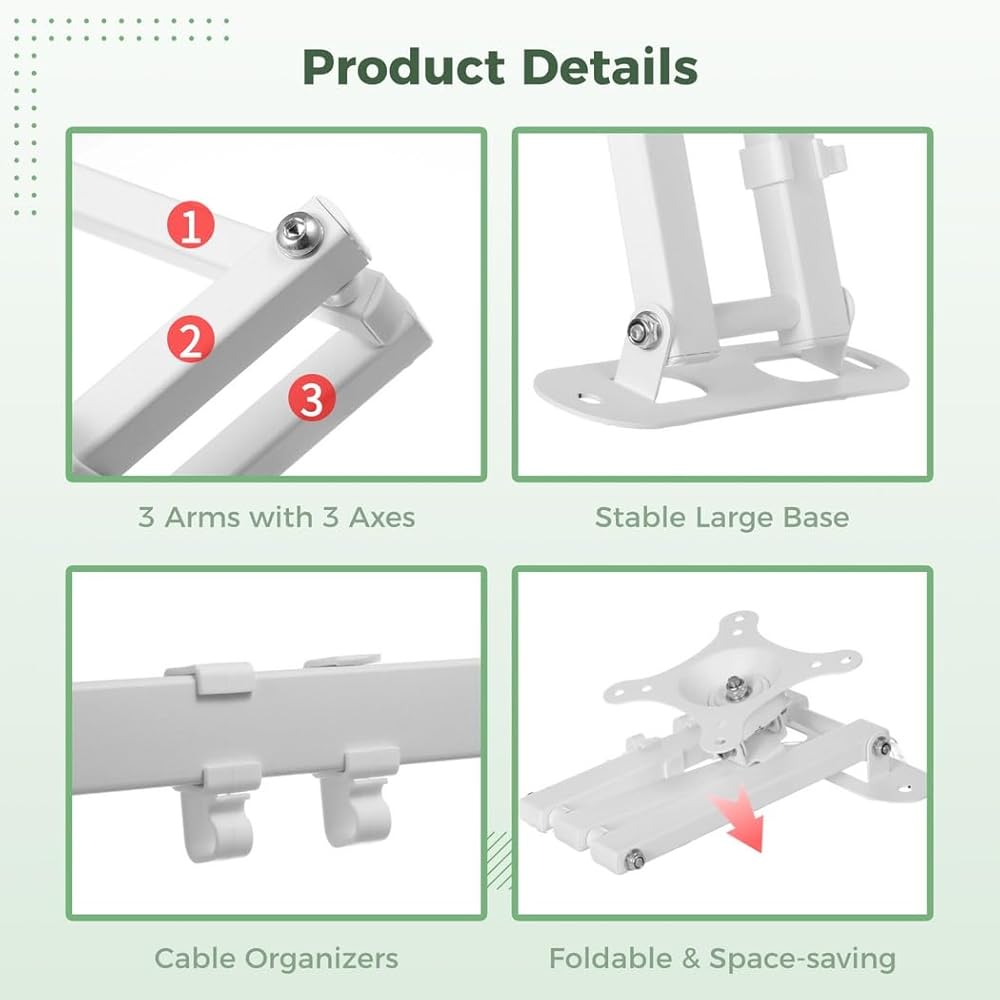 • Versatile compatibility: supports vesa sizes 75x75mm and 100x100mm; works with show 15 and most 15-28 inch monitors; three-axis arm ensures stable mounting