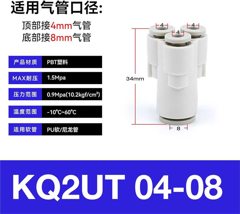 موصل هوائي بخمسة اتجاهات على شكل Y KQ2UD04-06 القصبة الهوائية سريع بقطر متغير PRG08-10 رباعي الاتجاهات 1 قطعة(四通KQ2UT04-08)