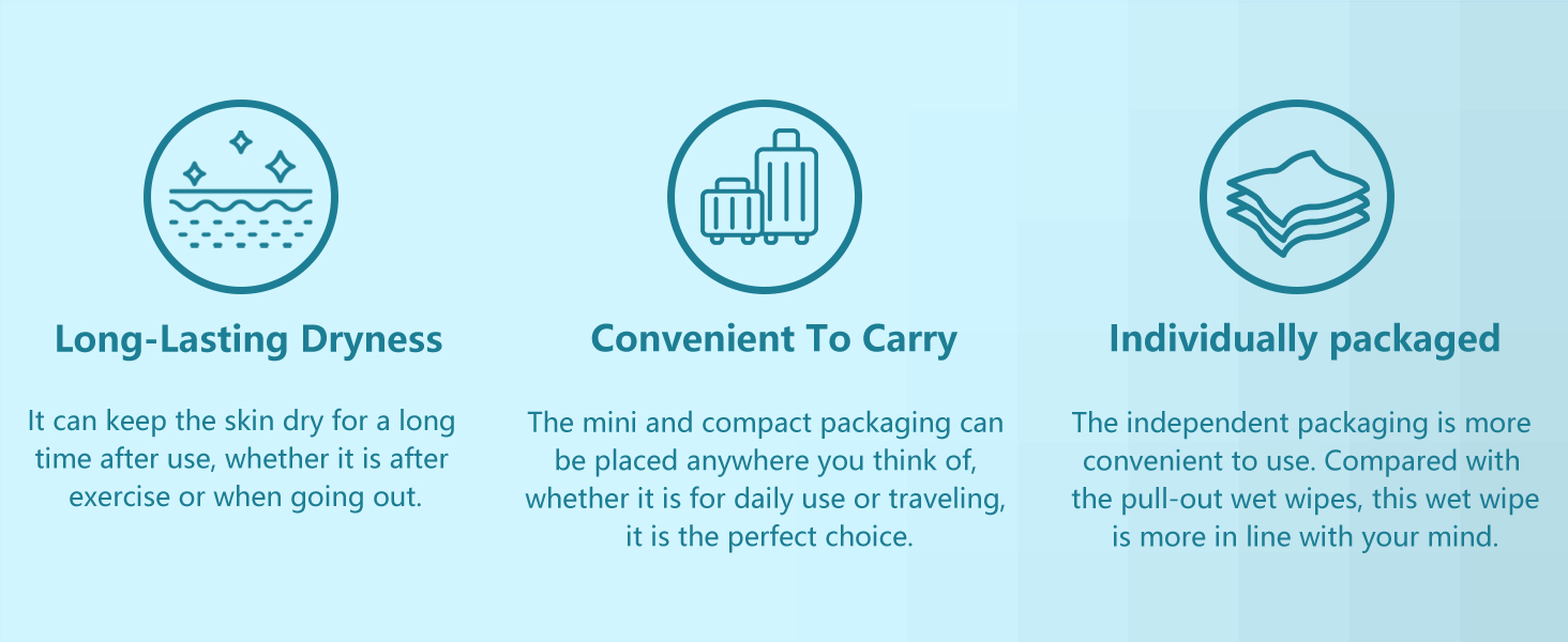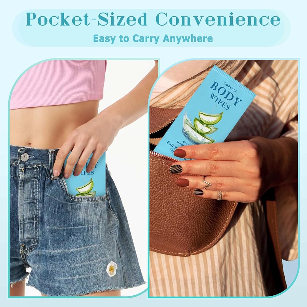 【مريحة وعملية】يتم تعبئة كل منديل مزيل العرق للجسم أثناء السفر بشكل فردي، مما يجعلها ذات حجم مناسب وسهل الحمل. يضمن التغليف الفردي النظافة ويحمي المناديل من الغبار. بالمقارنة مع العبوات السائبة التقليدية، فإن تصميم العبوات الفردية يوفر راحة ونظافة أفضل.