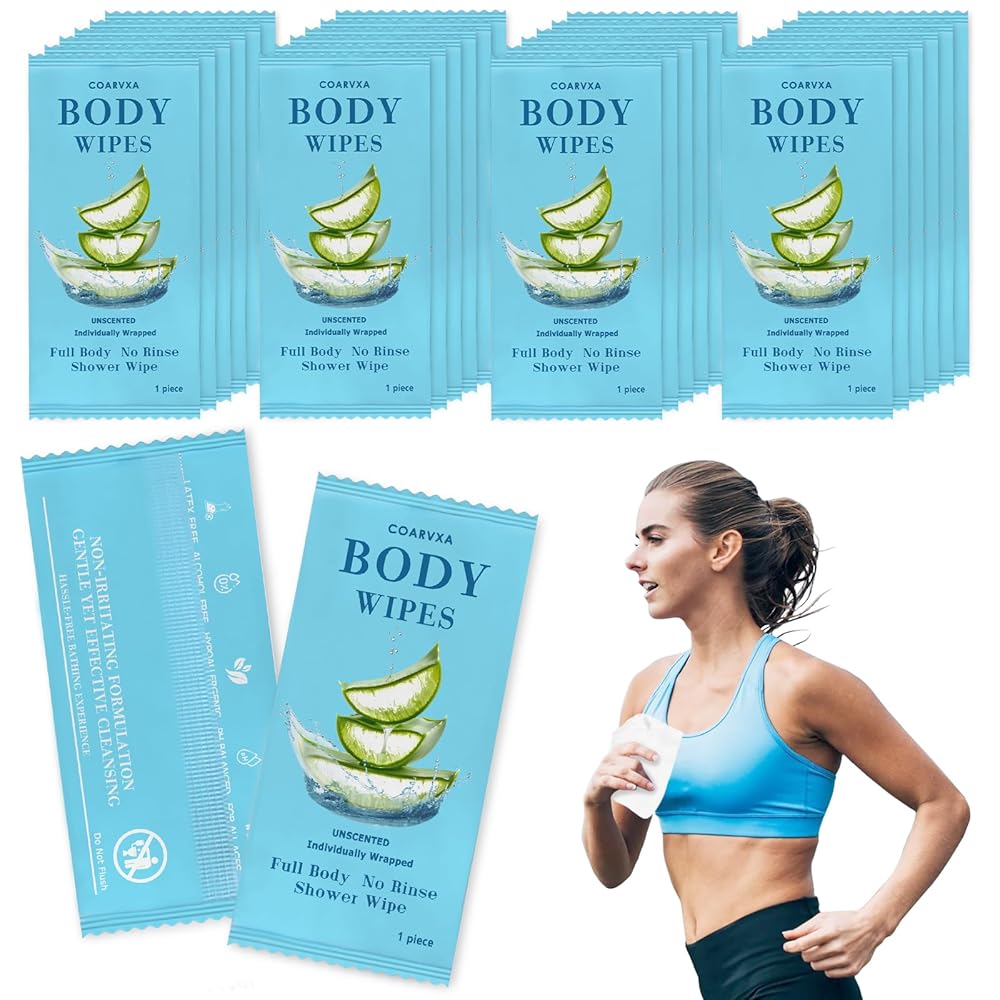 مناديل مبللة مزيلة لرائحة العرق للجسم 100 قطعة من المناديل المبللة ومزيل العرق أثناء السفر، لف الجلد بشكل فردي للإناث الذكور المراهقين في صالة الألعاب الرياضية، وحقائب الظهر، والتخييم