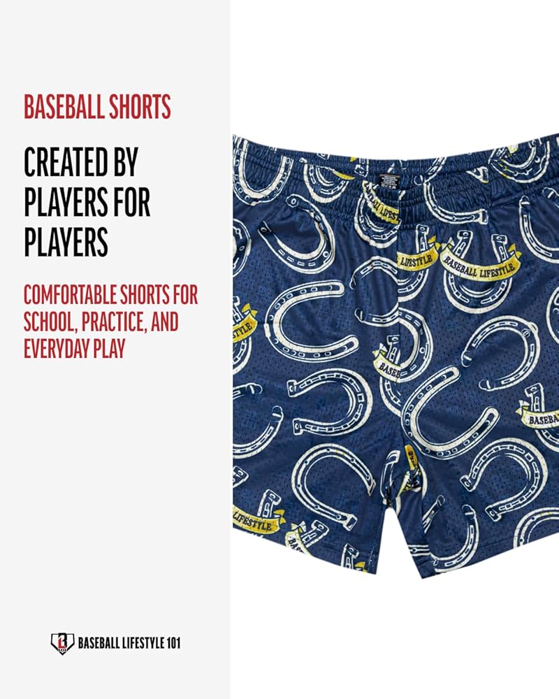 Mens mesh shorts where luck meets hustle. Wild West Windup allover horseshoe print brings wild west energy to bullpen sessions, workouts, and rest days when you are still locked in. Wild west meets the delivery.