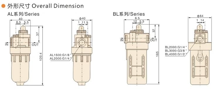 وحدة المعالجة مشحم هوائي 1/4 بوصة BSPP AL2000 نوع زيت الماء مشحم الهواء
