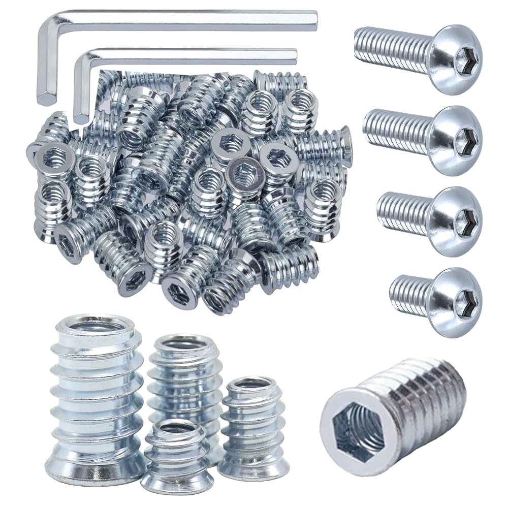 Introducing the comprehensive Furniture Nuts Screws Fastener Kit, designed to meet all your furniture assembly and repair needs. This meticulously crafted kit includes a total of 160 sets, featuring high-quality components including 1/4-20 x 10mm, 15mm, 20mm, and 25mm furniture nuts, threaded wood inserts, bolts, fasteners, connectors, and hexagonal drive screws. Constructed with durability and reliability in mind, our fastener kit provides the perfect solution for a variety of furniture projects, whether you are building new pieces or making repairs to existing ones. The assortment of screws and nuts ensures that you have the right size for every application, making your assembly process efficient and hassle-free.