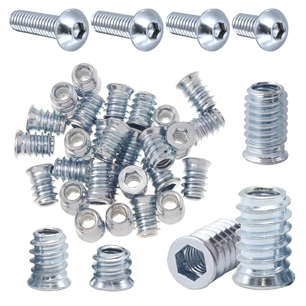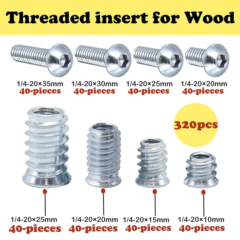 Complete Set: This threaded inserts for wood includes 160 sets of 1/4-20 x 10mm, 1/4-20X15mm, 1/4-20X20mm, and 1/4-20X25mm sizes, providing everything you need for robust furniture assembly and repairs.
