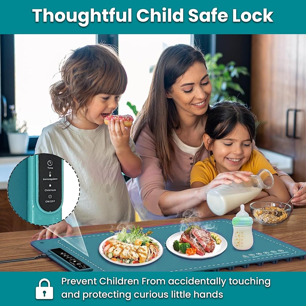 Safety is built in with an auto shut-off function and a 4-hour timer, giving you confidence during busy family meals. Its foldable, space-saving design makes it portable and easy to store, unlike bulky warming trays. Plus, cleanup is effortless thanks to its waterproof, smooth surface.