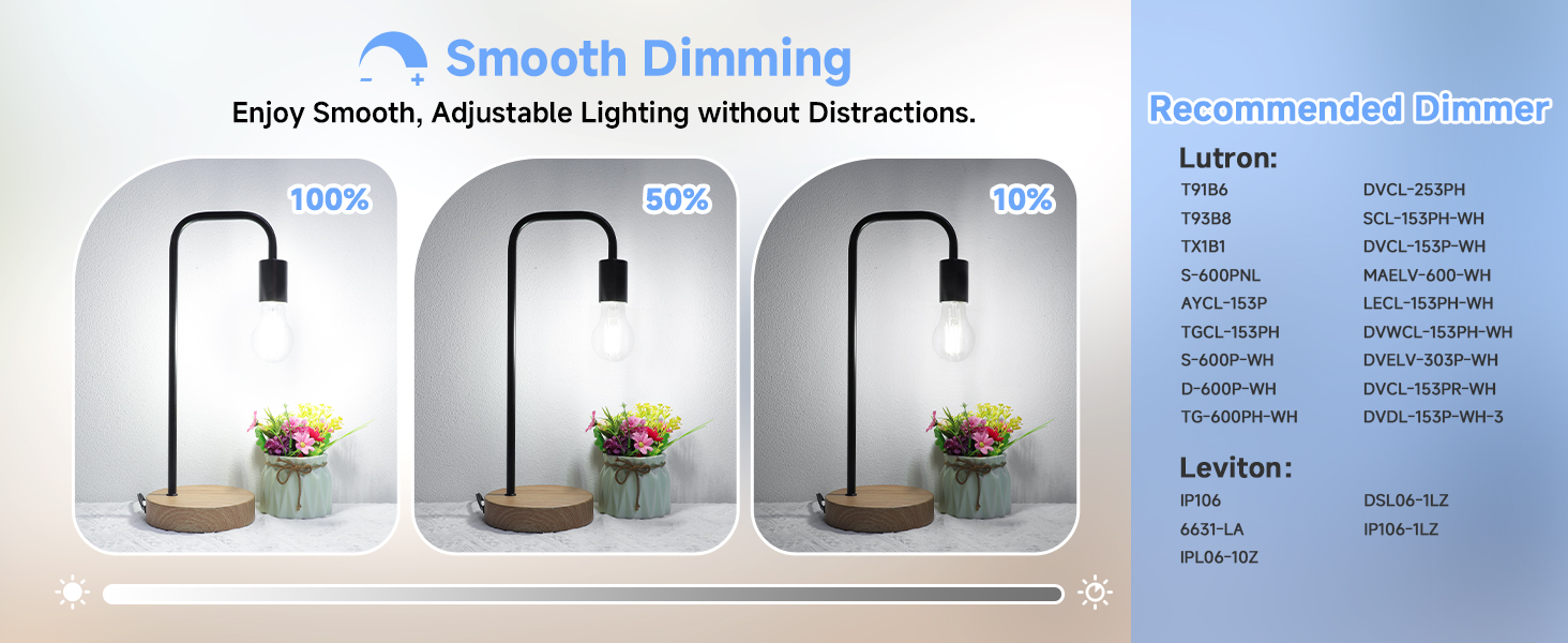 تعتيم سلس واستخدام متعدد الاستخدامات: متوافقة مع معظم أدوات التعتيم LED، توفر مصابيح A19 edison هذه تعتيمًا خاليًا من الوميض وبدون خطوات من 100% إلى 10%. يمكنك ضبط السطوع بسهولة لخلق أجواء رائعة لأي مساحة. يمزج تصميم الزجاج الشفاف والخيوط العتيقة لمصباح الإضاءة الخيطي A19 العتيق بين الكفاءة الحديثة والأسلوب الخالد - مثالي للثريات والأضواء المعلقة وشمعدانات الحائط وتركيبات الزينة والمصابيح الخارجية المغلقة