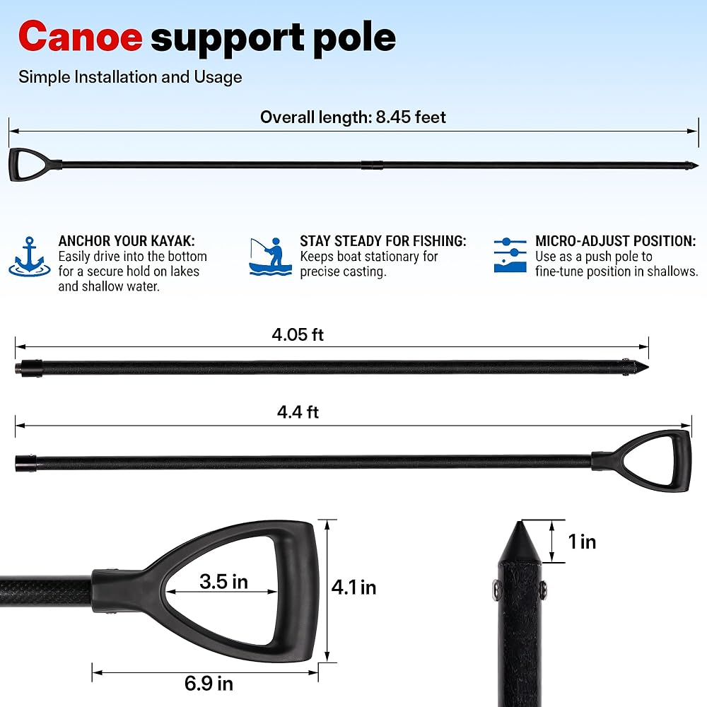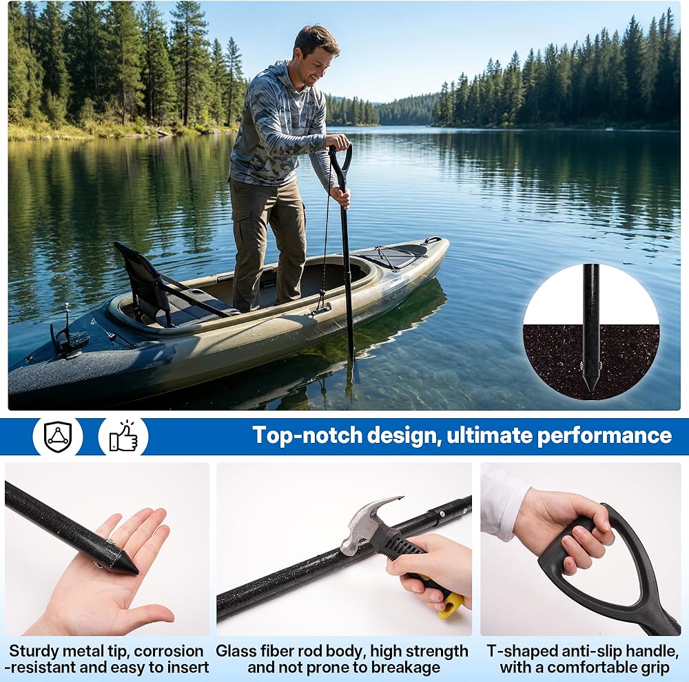 Elevate your shallow‑water adventures with our universal solid anchor pole—engineered to replace bulky traditional anchors and deliver instant, reliable hold for kayaks, canoes, paddleboards, and small vessels. Designed for lakes, rivers, shoals, and bays, it drives directly into mud or sand to stop drift from wind and current, keeping you steady for fishing, sightseeing, photography, or quiet relaxation. At 8.45 feet long with a detachable two‑piece modular build, it assembles quickly and stows easily for hassle‑free transport in cars, boats, or gear bags—perfect for day trips and extended fishing excursions. The ergonomic T‑shaped non‑slip handle ensures a secure grip for easy insertion and removal, with a built‑in tie‑point to secure ropes firmly and eliminate slippage. Whether you're a solo angler, outdoor enthusiast, or water sports lover, this versatile pole doubles as a reliable push pole for shallow‑water maneuvering, combining convenience, strength, and versatility in one essential tool.