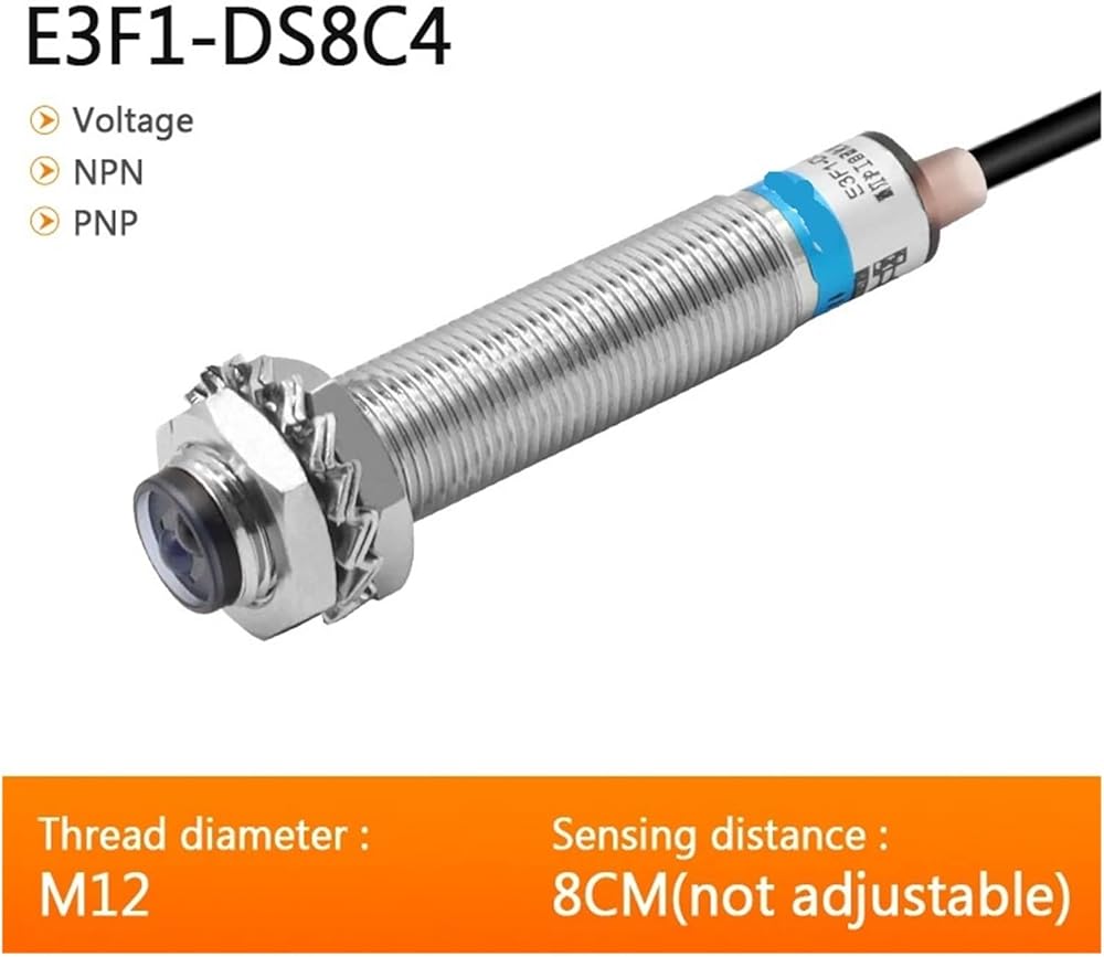 E3F1-DS8C4 M12 مستشعر نشر التبديل الكهروضوئي DC NPN لا يوجد نطاق كشف 8 سم