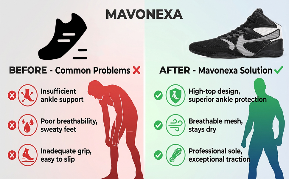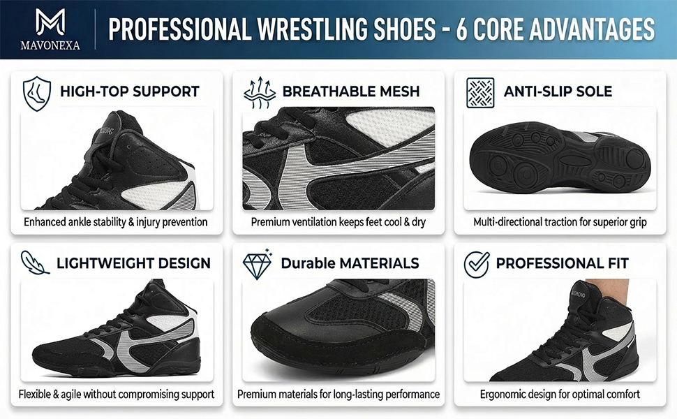 【Professional Men's Wrestling Shoes Design】Engineered for peak performance, these Mavonexa wrestling shoes offer superior grip and flexibility. They are essential footwear for serious athletes on the mat.