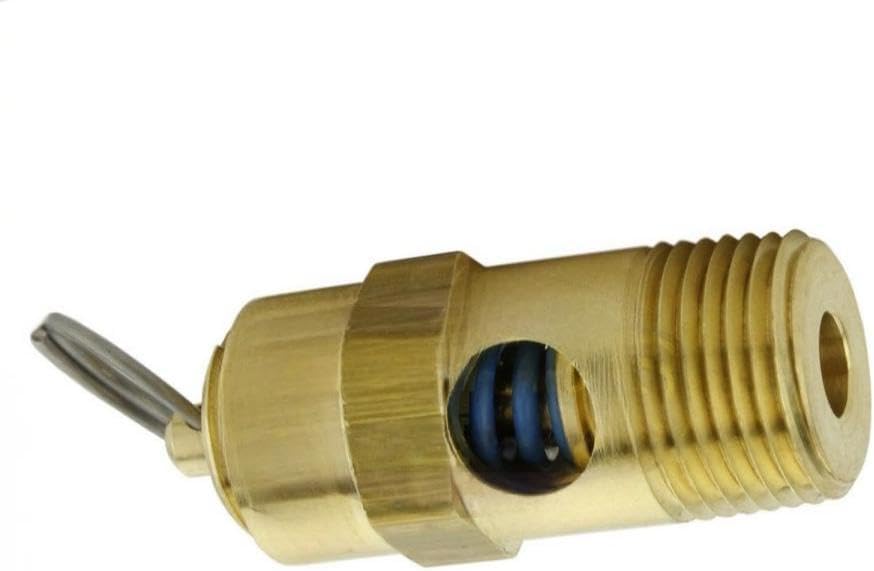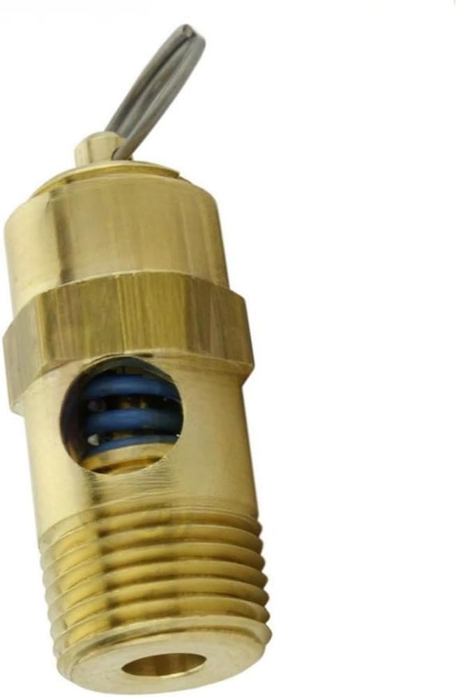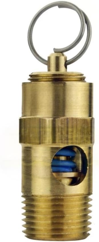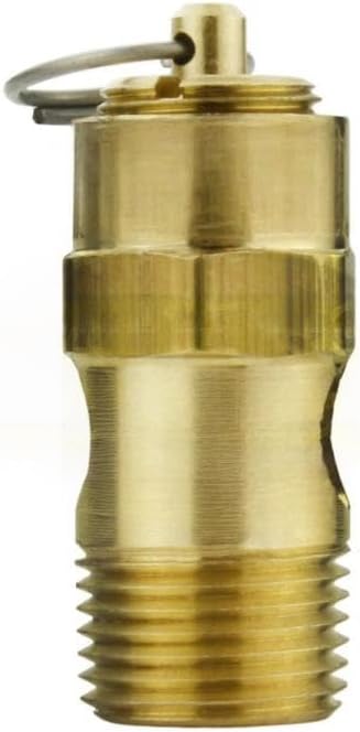• 140 PSI 3/8" male NPT air compressor safety relief pop off valve. The relief pressure of this valve is accurate within + or - 3% of the set pressure. Specifications: 140 PSI 124 SCFM Threads: 3/8" Male NPT (measure about 5/8") Total Valve Length: 1-3/4" Installation Wrench Size: 11/16" Max Temp: 250°F Solid Brass Construction