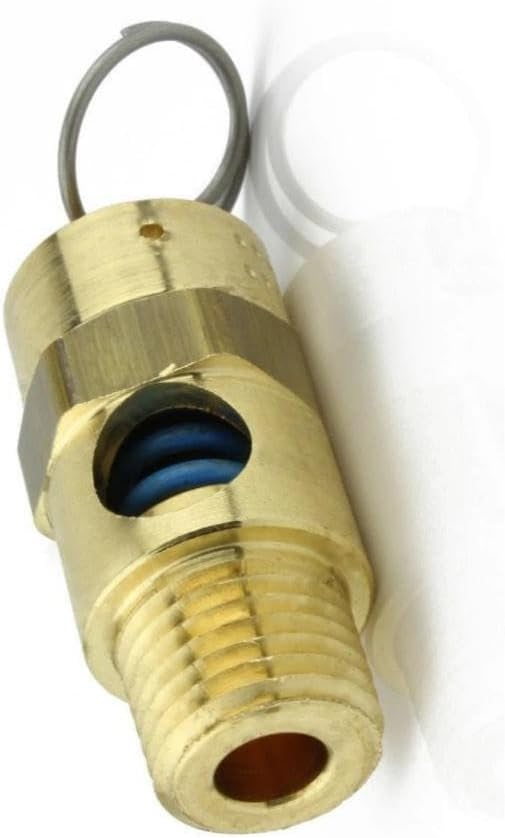 250125 صمام تخفيف الضغط الآمن لضاغط الهواء - لقطع غيار خزانات تخزين ضاغط الهواء كونرادر - صمام منبثق لضغط الخزان - 1/4 بوصة NPT 125 PSI 112 SCFM إجمالي طول الصمام: 1-3/4 بوصة
