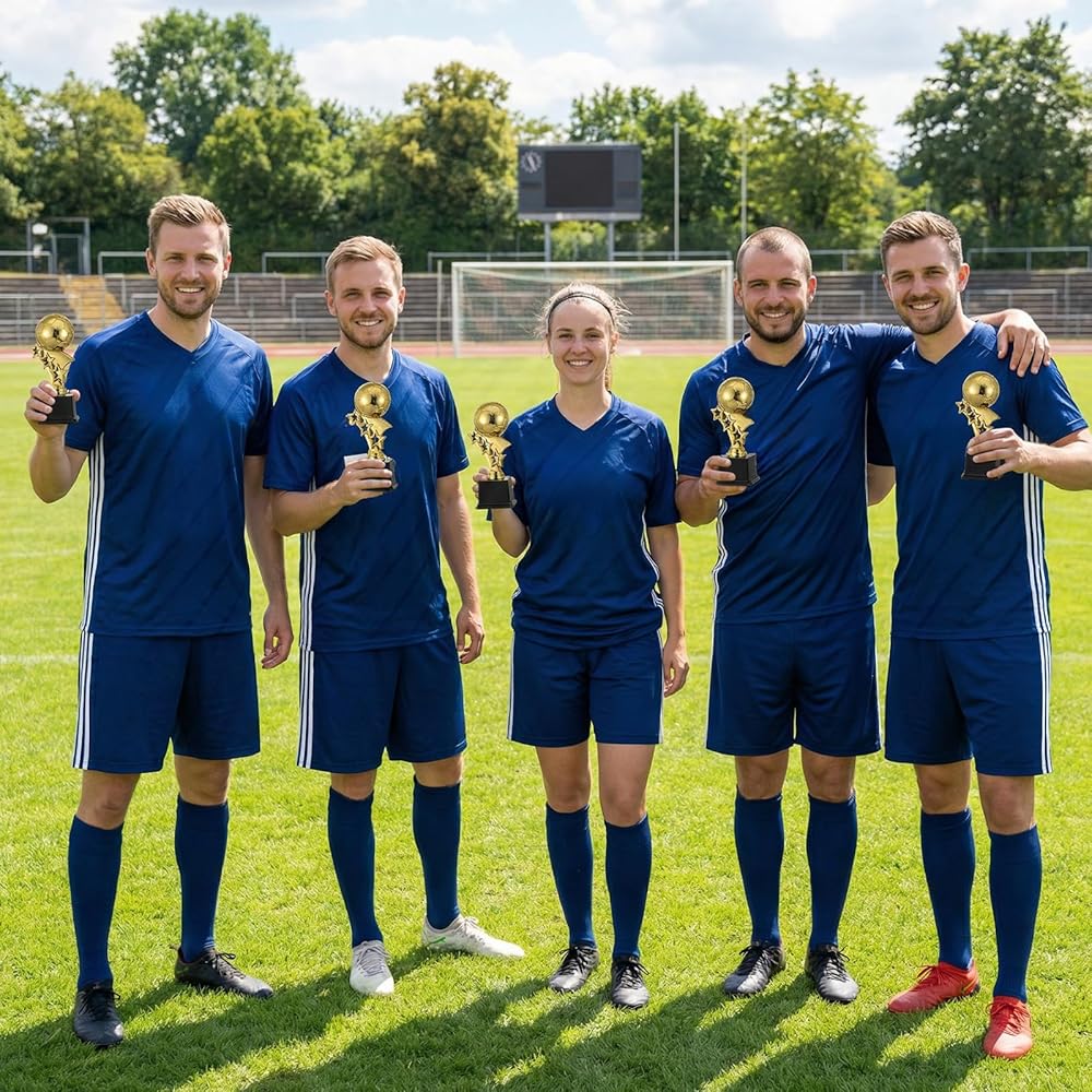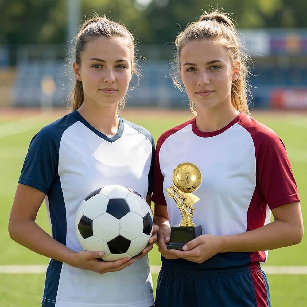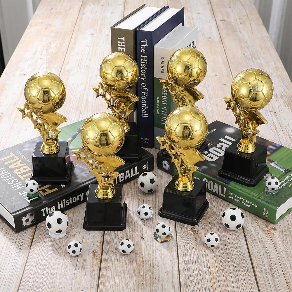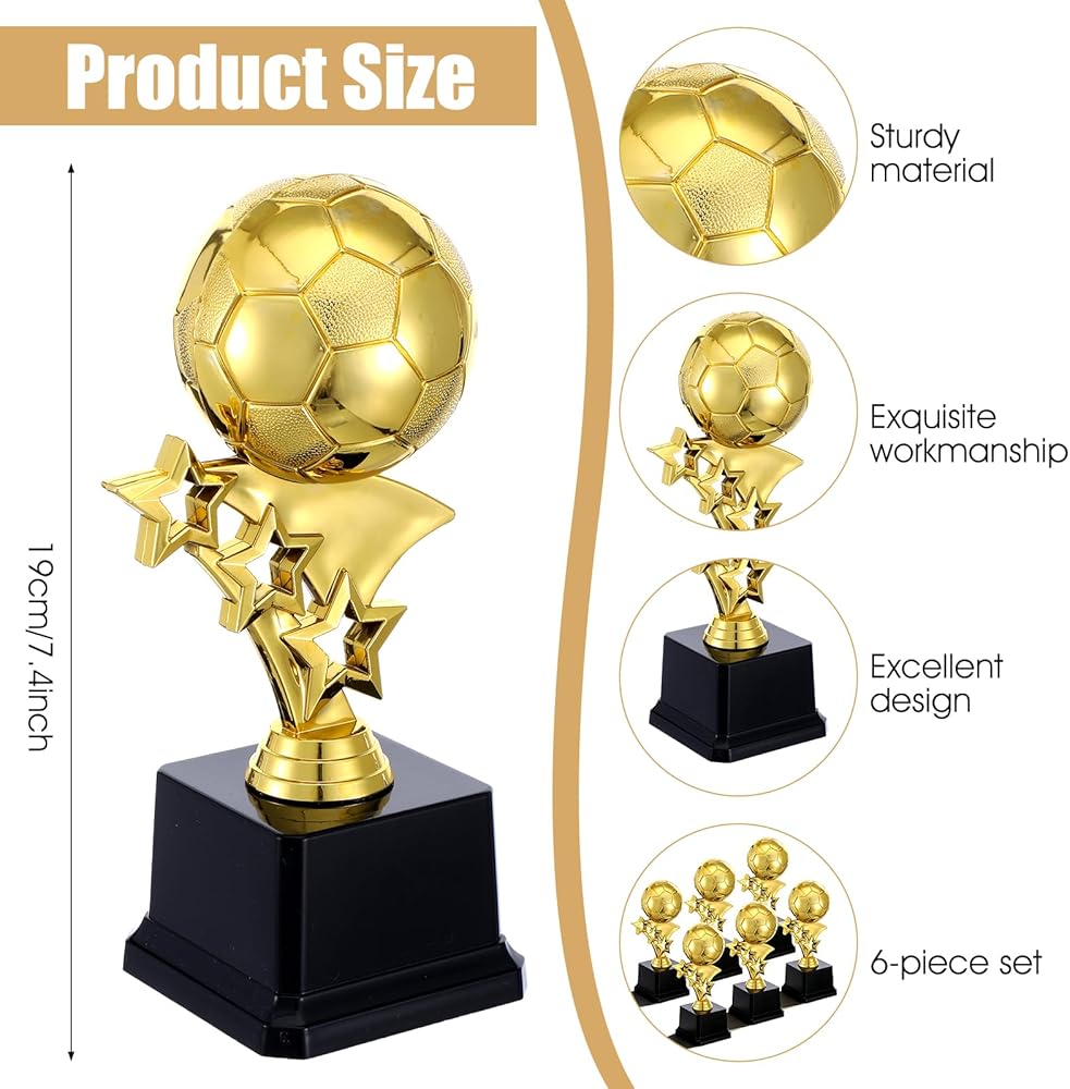 Each trophy is crafted from durable PP plastic with a rich, shimmering gold finish that catches the light and draws attention. The delicate soccer ball atop the pillar and the elegant five-pointed star design create a recognizable and prestigious award. Standing 7.4 inches (approximately 19 cm) tall, they offer a substantial presence worthy of any champion.