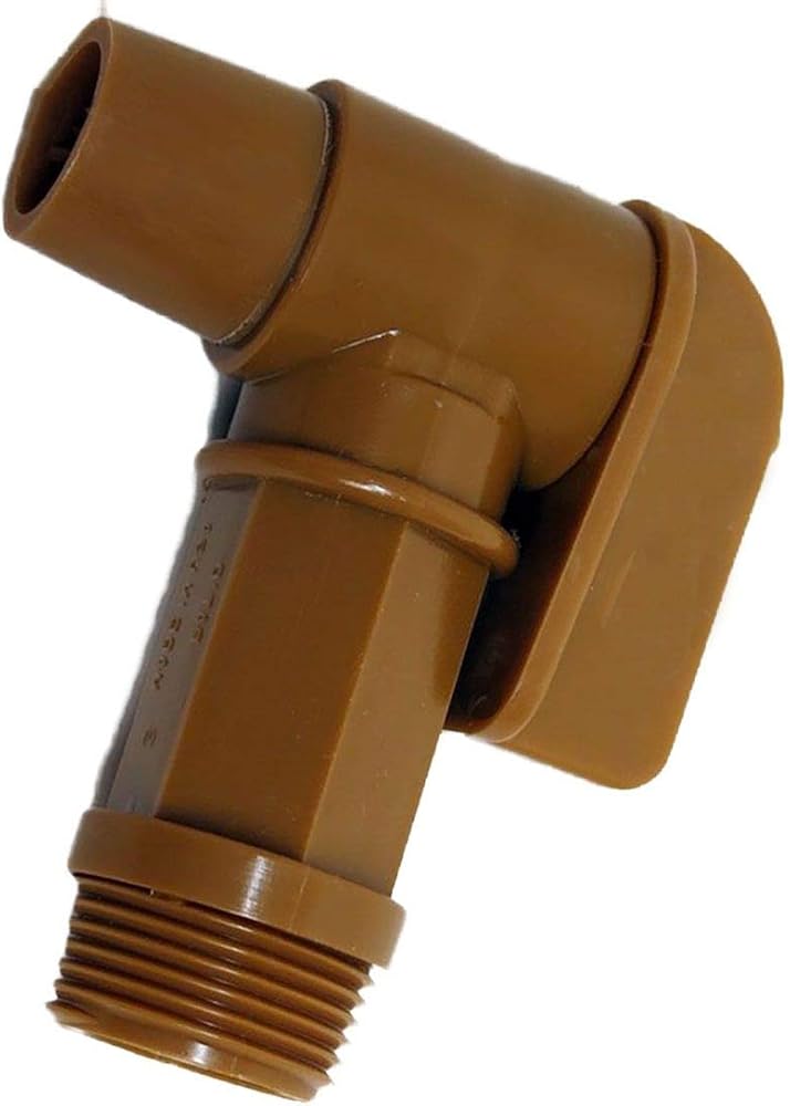 The Flo-Rite faucet is an excellent choice for use with foods, it is 100% Food Grade approved polyethylene construction. This gold faucet has a 5/8 inch bore, 3/4 inch NPT inlet and fits 3/4 inch bung openings.